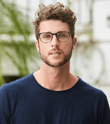 Eine ovale Gesichtsform kann so gut wie jede Brillenart tragen, egal ob eckig, rund, vintage oder Fliegerbrille. Letztere eignet sich übrigens auch für Männer mit Glatze.