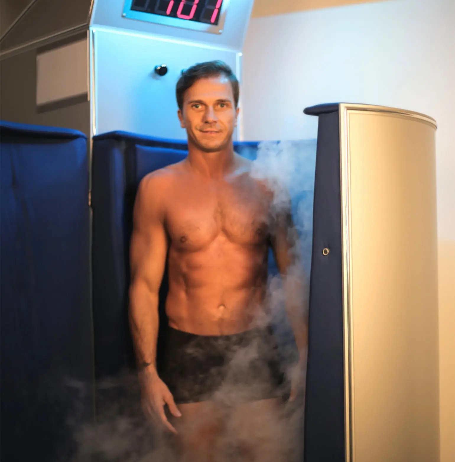 Während dieser Zeit sprechen wir immer mit dem Behandelten, um sicherzustellen, dass es ihm gutgeht und um ihn gegebenenfalls zu beruhigen. Nach der Sitzung können sich die Sportler sehr schnell anziehen, weil die Hautoberfläche durch die trockene Kälte nicht nass wird.