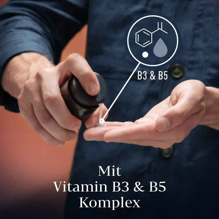 - Für die tägliche Anwendung eine kleine Menge in die Hand pumpen und auf Gesicht und Bartstoppeln auftragen.