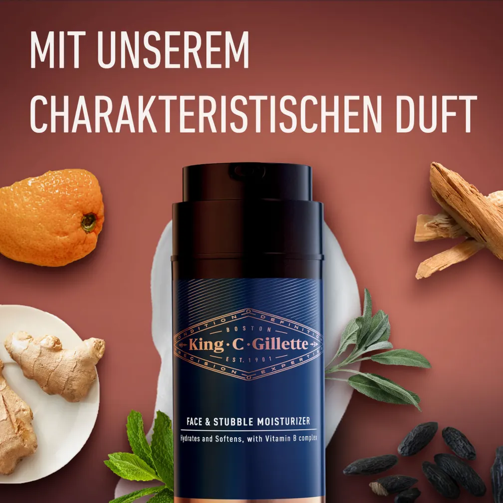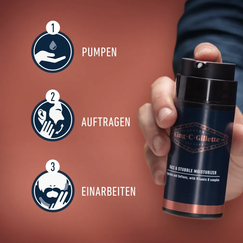 - Die King C. Gillette 3-Tage-Bart- und Gesichtspflege hydratisiert und pflegt das Barthaar und macht grobe, stachelige Stoppeln weich und geschmeidig.