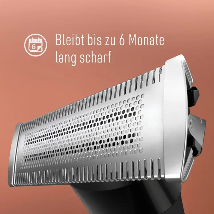 Anpassung an schwer zugänglichen Stellen und einen schlanken, gummierten 360˚-Griff für maximale Präzision. Außerdem ist er vollständig wasserdicht und verfügt über eine Akkulaufzeit von 45 Minuten für den bequemen Einsatz unter der Dusche.
